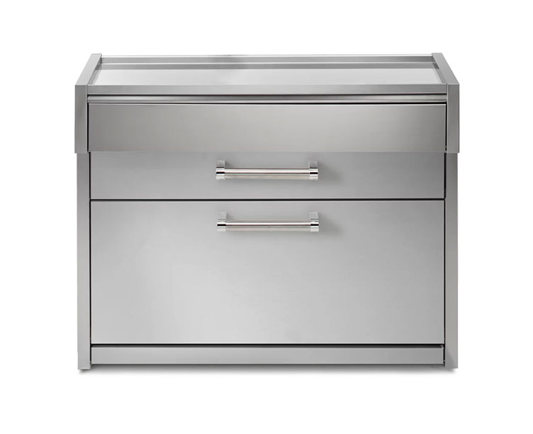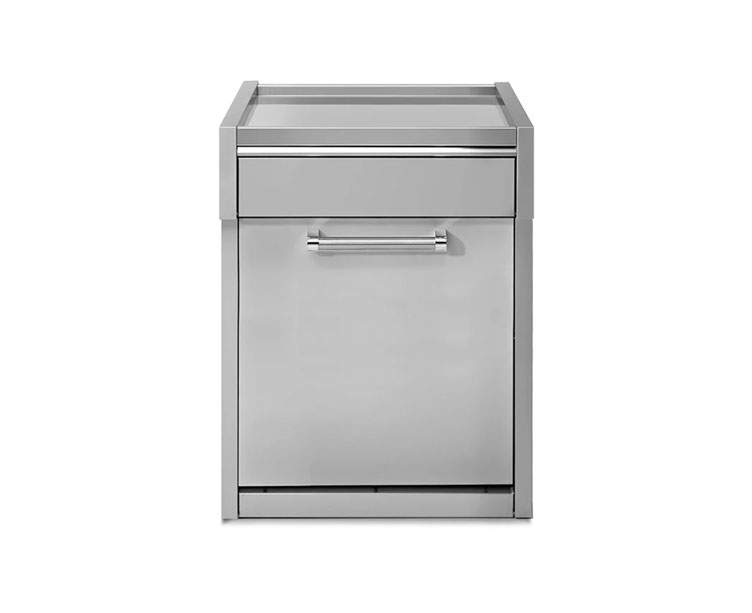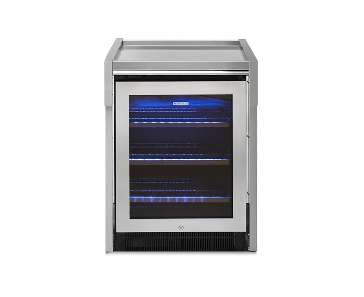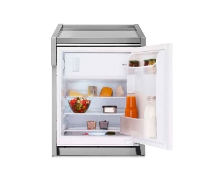 Steel Cucine har 70 cm brede moduler for innbygning – kjøelskap, vinskap eller isbitmaskin med kjøkkenfront i stål eller matt sort. I tillegg får du en ekstra benkeplateplass på utekjøkken.