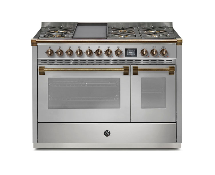 Semiprofesjonelle komfyrer utført i rustfritt stål for hjemmebruk, utviklet gjennom en rekke tester i materialer og teknologi for å garantere ytelse på et høyt nivå. Design inspirert av tradisjon, elegant estetikk og raffinerte detaljer, tilgjengelig med 4 forskjellige finish – krom, nikkel, messing og bronse. Koketopper for ethvert behov: gasstopper med effektive Sabaf messingbrennere og støpejernsrist, induksjon med flexisoner som gir fleksibilitet i matlagingen, en kombinasjon av Sabaf messingbrennere og elektrisk grillplate eller stekebord for hybridalternativene. Kombidampovn med 15 funksjoner og et automatisk TFT-display for programmering, INNVENT – et patentert ventilasjonssystem i 90cm med dobbel konvektor for en perfekt jevn matlaging. Kraft og ytelse, men med fokus på energibesparing: ECO- og SHABBAT-modusene sørger for det laveste forbruket, kombidamp gjør det mulig til å redusere temperaturen og koketiden samtidig som man oppnår overlegne resultater.
